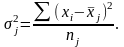 – частная (внутригрупповая) средняя; j – порядковый номер части совокупности (ее группы); 2 – общая дисперсия; 2j – внутригрупповая дисперсия; i – порядковый номер значения признака; nj – число единиц в группе. Тогда общая и внутригрупповая дисперсия соответственно