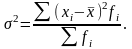 Дисперсия для первичного и вариационного рядов рассчитывается по формулам