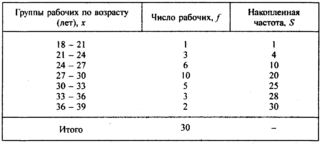 3.2. Имеются следующие данные о возрастном составе рабочих цеха (лет): 18; 38; 28; 29; 26; 38; 34; 22; 28; 30; 22; 23; 35; 33; 27; 24; 30; 32; 28; 25; 29; 26; 31; 24; 29; 27; 32; 25; 29; 29.