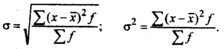 Среднее квадратическое отклонение (ơ) и дисперсия (ơ2) определяются так: