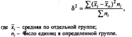 Межгрупповая дисперсия (дисперсия групповых средних δ2) отражает систематическую вариацию, т. е. те различия в величине изучаемого признака, которые возникают под влиянием фактора, положенного в основу группировки. Межгрупповая дисперсия определяется по формуле