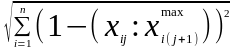Возведя расстояния в квадрат, определяют значения элементов таблицы квадратов (1 – (Хij:Хi(j+1)max))2, после суммирования которых и вычисления из этой суммы квадратного корня (