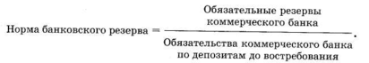 Логично предположить, что банки не могут отдавать взаймы все имеющиеся у них деньги вкладчиков, поскольку последние имеют право отозвать свои деньги в любой момент. Однако банковский опыт показывает, что банки не только могут предоставить в кредит почти все средства на депозитах, но и удовлетворить требования своих вкладчиков. Тем не менее, для обеспечения собственной безопасности банки должны оставить определенную фиксированную часть средств «незадействован-ной». Отношение между размером обязательных резервов, которые должны иметь коммерческие банки, и обязательствами по вкладам называется «нормой обязательных резервов». Эта норма устанавливается Центральным банком страны.