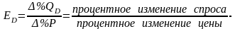 Эластичность спроса по цене (ценовая эластичность спроса Ed) измеряется как процент изменения количества (Q) к проценту изменения цены (P). Эластичность измеряется коэффициентом эластичности.
