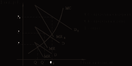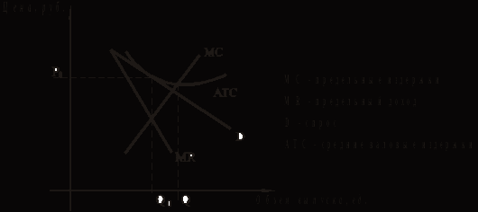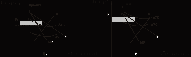 MC - предельные издержки; MR - предельный доход; D – спрос; AVC - средние переменные издержки; ATC - средние валовые издержки.
