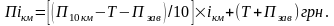 Вартість перевезення на відстань до 10 км. визначають за формулою: