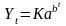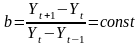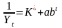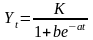 де параметр а — різниця між ординатою Yt, при t = 0 та асимптотою K. Якщо a < 0, асимптота знаходиться вище кривої, якщо a > 0 — асимптота нижче кривої. Параметр b характеризує співвідношення послідовних приростів ординати. За умови рівномірного розподілу ординати по осі часу ці співвідношення є сталими:
