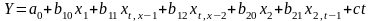 . Фактори, що мають два і більше лагів (розподілений у часі лаг), вводяться в модель блоками лагових змінних. Загальний вигляд моделі з розподіленими лагами: