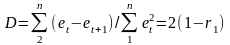 За відсутності автокореляції між суміжними членами ряду значення D становить приблизно 2, при високій додатній автокореляції D наближається до 0, при високій від'ємній автокореляції— до 4. Визначені критичні межі його значень: нижня