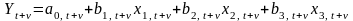 — економічна оцінка сільськогосподарських угідь, бали; х2 — частка садів і виноградників у загальній площі сільськогосподарських угідь; х3 — частка праці механізаторів у загальній кількості відпрацьованих людино-днів. Для оцінювання тенденцій ефектів впливу кожного з цих факторів введено змінні динамічної взаємодії