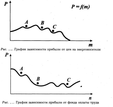 На рис. 1.3 точка А характеризует повышенную устойчивость организации от роста цен на энергоносители; точка С, напротив, сигнализирует о предстоящей катастрофе, которая может наступить даже при незначительном повышении цен на этот компонент производства.