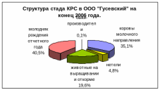 Из данных по структуре стада можно сказать, что в хозяйстве необходимо увеличивать удельный вес коров, нетелей и тёлок старше двух лет за счет ремонтного молодняка, так как основная масса молодняка идет на продажу и реализуется на мясо.