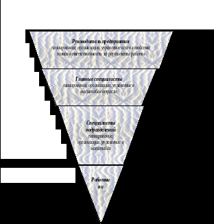 Как отмечалось, одной из основных причин низкой результативности аграрного производства является несоблюдение технологических требований. Агроном обязан детально объяснять механизаторам как проводить ту или иную технологическую операцию в конкретных условиях, на данном поле или участке земли, и строго спрашивать за ее выполнение в соответствии со своими требованиями. Это отнюдь не означает, что главный или даже рядовой агроном должен осуществлять прямой контроль за каждым механизатором, так как в иерархии управления необходимо выстраивать вертикаль ответственности, в которой, например, главный специалист спрашивает с руководителя подразделения или отраслевого специалиста, тс, в свою очередь, с учетчика, а последний — с непосредственного исполнителя. Чрезвычайно важно определись границы ответственности в этой пирамиде. Ее лучше представить в перевернутом виде (рис.5), где по мере продвижения к основанию, расположенному сверху, задачи и мера ответственности сотрудников предприятия возрастают. На практике необходимо соблюсти оптимальное сочетание между уровнями пирамиды. Например, руководитель старается необоснованно переложить бремя ответственности на плечи подчиненных или, напротив, выполнять их функции. Это значит, нарушается баланс интересов и обязанностей и вместо правила золотого сечения в экономике получают распространение уродливые производственные отношения. Они неминуемо пагубно отражаются на результатах работы предприятия. Если иерархия ответственности выстроена гармонично, то эффективность производства повышается, достигается желаемый результат. В противном случае, при потере оптимальных пропорций пирамиды ответственности эффективность вряд ли значительно возрастет и будет весьма неустойчивой.