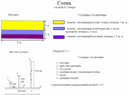 | № | Условное обозначение | Видовое название/латинское | Сорт | Продолжительность жизни, лет | Высота, см | Время цветения, мес. | Площадь, занимаемая одним растением, см2 | Площадь элемента, м2 | Кол-во экземпляров на элементе, штук | Кол-во экземпляров по всей площади, штук |