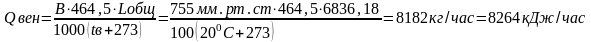 Q = 81г/час·284 головы = 23004г/час + процентная надбавка на испарение (табл. 4.37) – 12% = 25764,48г/час