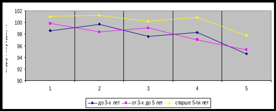 Проанализировав график рисунка 2.1, нам видно что, экстерьер и конституция животных всех возрастов приближены к средним промерам коров записанных в 5 томе Государственной племенной книги Бестужевской породы, которые были взяты за 100% стандарт породы. Также, видно что, чем старше животные, тем ближе к средним промерам. А животные старше 5 лет превышают средние промеры. Самое большое отклонение от стандарта имеет обхват пясти до 3-х лет он на отметки 95 %, и даже коровы, возраст которых старше 5-ти лет обхват пясти составляет 98%, хотя все остальные промеры данного возраста превышают 100%. Из чего мы можем сделать вывод, что зоотехническая работа со стадом ведется на высоком уровне.