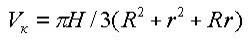 в) Объём круглого в плане котлована с откосами (рис. 1, в) определяют по формуле опрокинутого усечённого конуса: