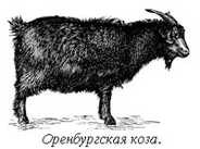 Продуктивность. Шерсть оренбургских коз состоит из грубой ости толщиной в среднем 85 мкм и длиной 8. - 10 см, тонкого пуха-подшерстка диаметром 14 - 16 мкм и длиной 5 - 6 см. Толщина и длина различных шерстных волокон подвержены колебаниям. У молодых животных пух более тонкий, но короткий. С возрастом его диаметр и длина увеличиваются. В породе встречаются козы как с более длинной, так и укороченной шерстью. Содержание пуха в шерсти оренбургских коз колеблется от 31 до 45%, на племенных фермах от 35 до 37%. Окраска ости и покровного волоса преимущественно черная, а пуха темно-серая. Несмотря на слабую жиропотность, технологические качества пуха хорошо сохраняются, так как на животных он надежно защищен от влаги, света, грязи и сора более длинной остью. Ценными особенностями оренбургского пуха, кроме малого диаметра, являются его мягкость и эластичность, высокая уравненность по толщине и длине, как в пучке, так и на различных частях туловища. Диаметр пуха в образце, взятом с лопатки, отличается от такового с ляжки всего на 0.2 - 0.3 мкм. Средняя разрывная нагрузка пуховых волокон в зависимости от их диаметра колеблется от 4,2 до 8,2 г. Серьезный недостаток пуха оренбургских коз это укороченность волокна, которая затрудняет его переработку, уменьшает выход пряжи и снижает качество изделий.