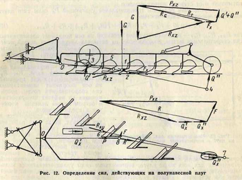 13.СИЛЫ, ДЕЙСТВУЮЩИЕ НА ПОЛУНАВЕСНОЙ ПЛУГ