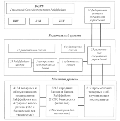 Германский Союз Райффайзен (DRV) – обслуживает сельские товарные и обслуживающие кооперативы, включая кредитные кооперативы с товарной деятельностью, в том объеме, насколько это касается товарного сектора.