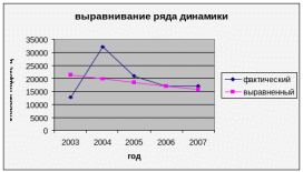 Анализ значений таблицы и графика показал, что численность поголовья коров имеют тенденцию к сокращению и выравненная линия развития (тренд) численности коров, характеризуя основную тенденцию, стремительно падает вниз.