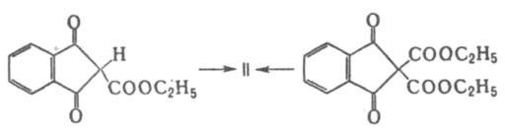 1,3-И. биологически инертен. Большое практическое значение имеют его производные по атому С-2, обладающие биол. активностью. 2-Арил-1,3-индандионы получают взаимодействие фталевого ангидрида и арилуксусных к-т с послед. изомеризацией образующихся бензилиденфталидов (кат. - CH3ONa или C2H5ONa). 2-Фенил-1,3-индандион (т. пл. 148-149 °С) -антикоагулянт крови (фенилин) мягкого действия (IV, R = Н, R' = С6Н5). В качестве антикоагулянтов могут быть использованы также его 4'-хлор-, 4'-бром- и 4'-метоксизамещенные (температура плавления 142-144 °С, 142-146 °С, 152-154°С соответственно). 2-Фенил-1,3-индандион легко взаимодействует по атому С-2 с формальдегидом, образуя 2-гидроксиметил-2-фенил-1,3-индандион антикоагулянт омефин; также легко нитруется, галогенируется, сульфируется по атому С-2. 2-Метиламино-2-фенил-1,3-индандион обладает снотворным действием, 2-этиламино-2-фенил-1,3-индандион - противосудорожным. Конденсацией диметилфталата с метилкетонами (катализатор - CH3ONa) получают 2-ацил-1,3-индандионы, используемые как родентициды 2-(дифенилацетил)-1,3-индандион [IV, R = Н, R'= СОСН(С6Н5)2], выпускаемый под назв. "дифацион", а также 2-пивалоил-1,3-индандион [IV, R = Н, R' = СОС(СН3)3] и 2-изовалероил-1,3-индандион [IV, R = Н, R' = COCH2CH(CH3)2]. [2]