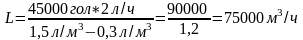 Расчет часового объема вентиляции для птичников с числом посадочных мест в количестве 45 000 голов.