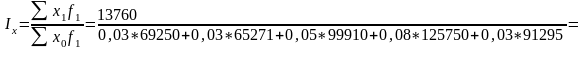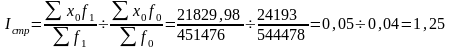 где: x0 – трудоёмкость 1 центнера в базисном году, тыс.руб.; x1 – трудоёмкость 1 центнера в отчетном году, тыс.руб.