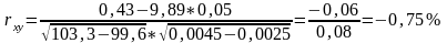 Установим наличие, направление и тесноту связи между x и y, рассчитав коэффициент корреляции: