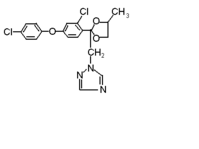 Действующее вещество цис,транс-4-[4-Метил-2-(1H-1,2,4-триазол-1-илметил)-1,3-диоксолан-2-ил]-3-хлорфенил-4-хлофениловый эфир, соотношение изомеров цис-транс 45:55 (Ciba-Geigy).