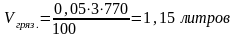Необходимая вместимость грязевого пространства сепаратора по формуле 3.3.7: