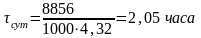 Продолжительность работы транспортера, в течении суток по формуле 3.4 6: