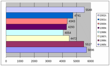 | Год | 1995 | 1996 | 1997 | 1998 | 1999 | 2000 | 2001 | 2002 |