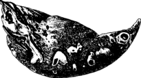 Взрослые особи Fasciola hepatica. характеризующиеся листовидной формой и наличием конусовидного переднего конца.