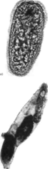 Стадии развития Fasciota hepatica: а) мирацидий; b) взрослая редия. содержащая церкарии; d) инкапсулированная метацеркария;.