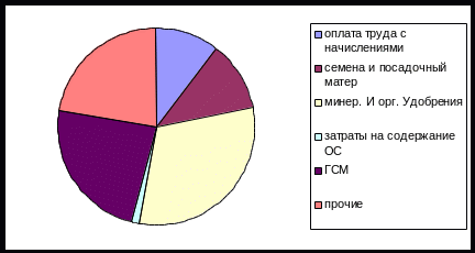 2. В отчетном году наибольший удельный вес в структуре затрат приходится на минеральные и органические удобрения (30 %). Увеличились также затраты на оплату труда (30,4 руб.→34,2 руб.).