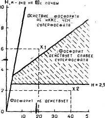 Если нет данных о гидролитической кислотности и емкости поглощения, то можно ориентировочно пользоваться показателями рН солевой вытяжки аналогично определению нуждаемости почв в извести: чем кислее почва, тем вероятнее хорошее действие фосфоритной муки.