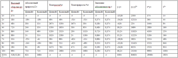 Вывод : из данной таблицы при аналитическом выравнивании валового сбора сахарной свеклы по предприятиям видно, что валовый сбор не зависит от условного периода времени.