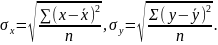 - среднее квадратическое отклонение факторного и результативного признаков соответственно. Рассчитываются по формулам: