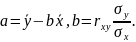 Значения параметров уравнения a и b определяются по формулам (Приложение 6):