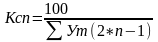 Ксп2005=100/(67.1(2*1-1)+25.8(2*2-1)+1.94(2*3-1)+1.86(2*4-1)+1.31(2*5-1)+1.29(2*6-1)+0.67(2*7-1)+0.02(2*8-1))=100/202.2=0.49
