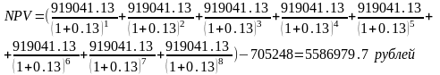Также критерием оценки эффективности проекту является чистый дисконтированный доход (NPV), который сейчас и рассчитаем.