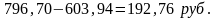 Рассчитаем прибыль от реализации 1ц молока (цена предложения молока на проектный период с учётом индекса цен 103,2% составит 796,70 руб. за 1 ц):