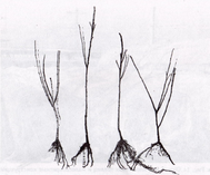 Рис. 2. Укорененные черенки черенки вишни: слева — без обработки; справа — обработанные индолилмасляной кислотой