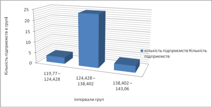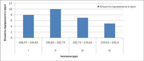 Рис. 2.1.2 – Інтервальний ряд розподілу підприємств за врожайністю картоплі.
