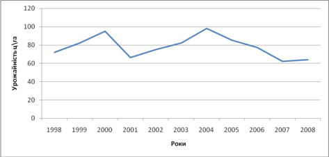 | Роки | Урожайність, ц/га | Абсолютний приріст | Коефіцієнт росту | Темп росту, % | Темп приросту, % | Абсолютне значення 1% приросту | ||||||||