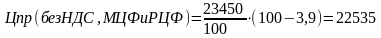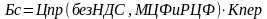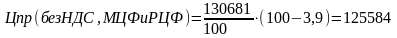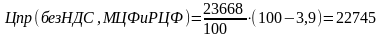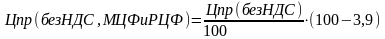 где Цпр (без НДС, МЦФ и РЦФ) - цена приобретения без уплаты налогов;