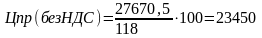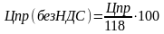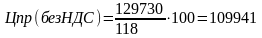 Цена приобретения без учёта НДС рассчитывается по формуле: