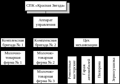 1.2 ОРГАНИЗАЦИОННАЯ И УПРАВЛЕНЧЕСКАЯ СТРУКТУРЫ, РАЗМЕРЫ И СПЕЦИАЛИЗАЦИЯ СПК «КРАСНАЯ ЗВЕЗДА»