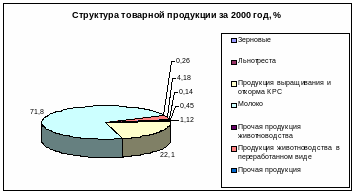 Из расчётов видно, что в период с 2000 по 2002 год хозяйство имело высокий уровень специализации, а в 2003 году и в 2004 году – углублённый. Следовательно, можно сделать вывод, что хозяйство специализируется на производстве молока.